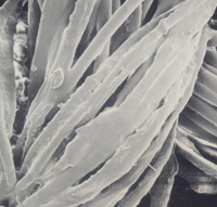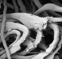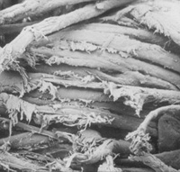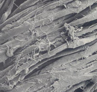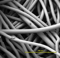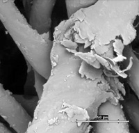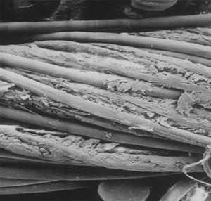 У мокрому стані волокна розтріпуються та звалюються. Пошкодження тканини з високим коефіцієнтом тертя між волокнами.